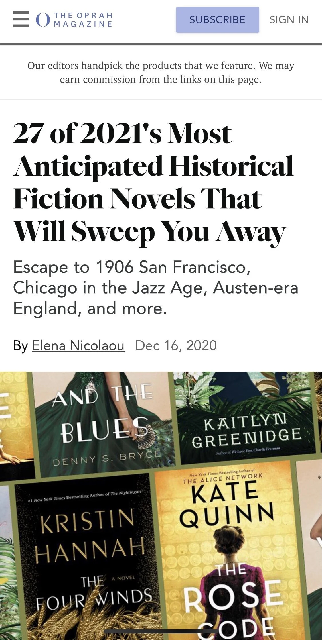 Good news! Yellow Wife has been featured in Oprah's Magazine as 27 of the most anticipated Historical Fiction novels for 2021! Yay! Oprah has been front and center on my vision board for years, and I couldn’t be more thrilled to see intention become a reality.
